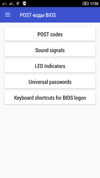 The application "BIOS POST Codes" is a handbook with a user-friendly interface for decoding BIOS error codes of modern motherboards of different manufacturers.